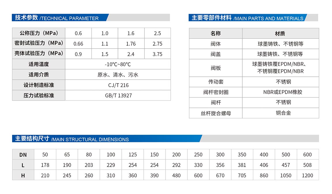 閥門不會生銹,與介質(zhì)接觸的橡膠及環(huán)氧樹脂涂層均不會對水質(zhì)構(gòu)成影響。